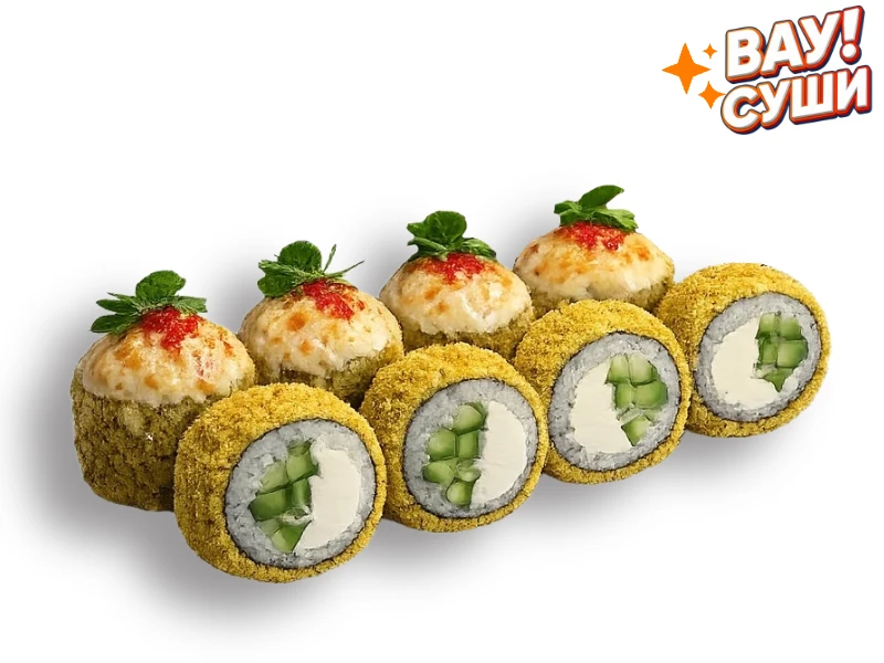 Состав: рис, нори, тигровая креветка, сыр сливочный, огурец, икра масаго, соус васаби, лук зеленый, острый 🌶️